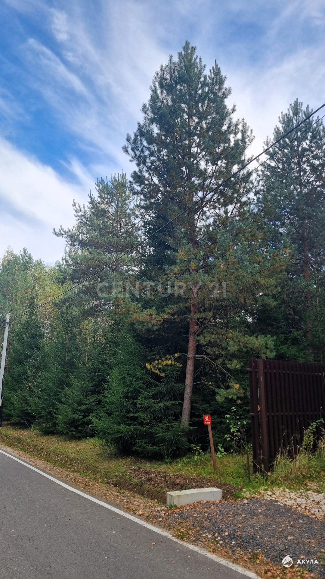 Участок с лесными деревьями. Электричество  15 кВт. Установлен забор 150 метров по периметру с соседями.